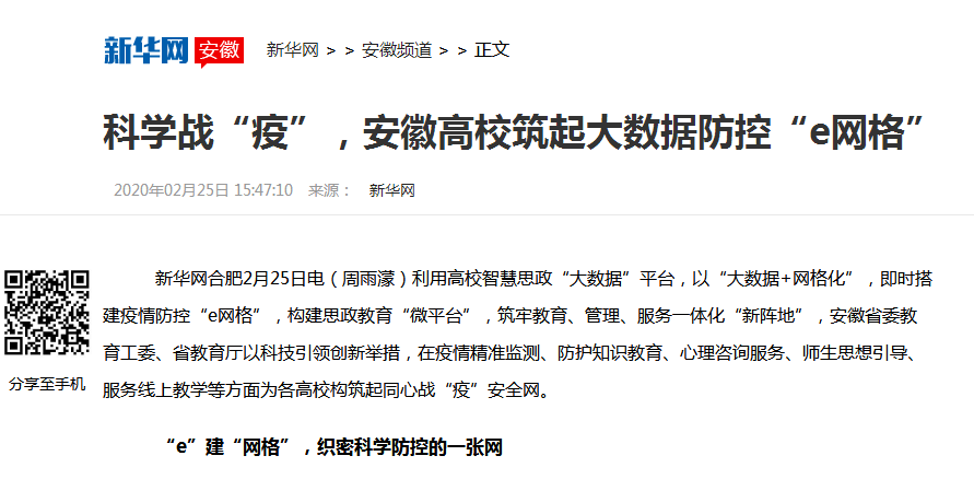 【媒体建大】新华网安徽:科学战“疫”,安徽高校筑起大数据防控“e网格”