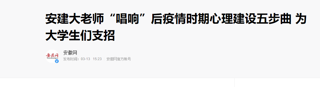 【媒体建大】安徽网:安建大老师“唱响”后疫情时期心理建设五步曲 为大学生们支招