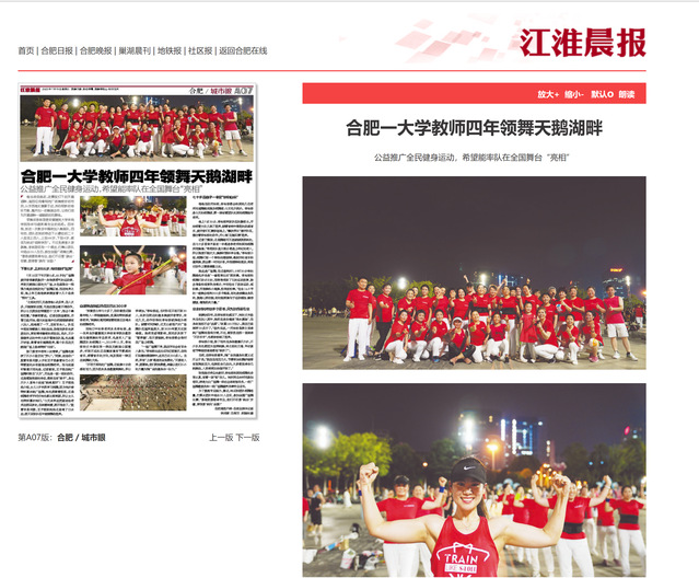 江淮晨报、合肥晚报:合肥一大学教师四年领舞天鹅湖畔