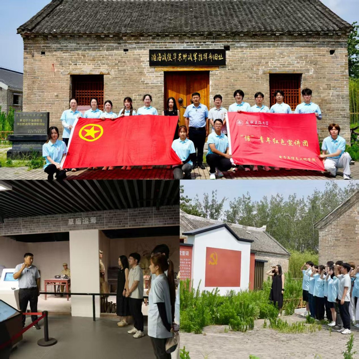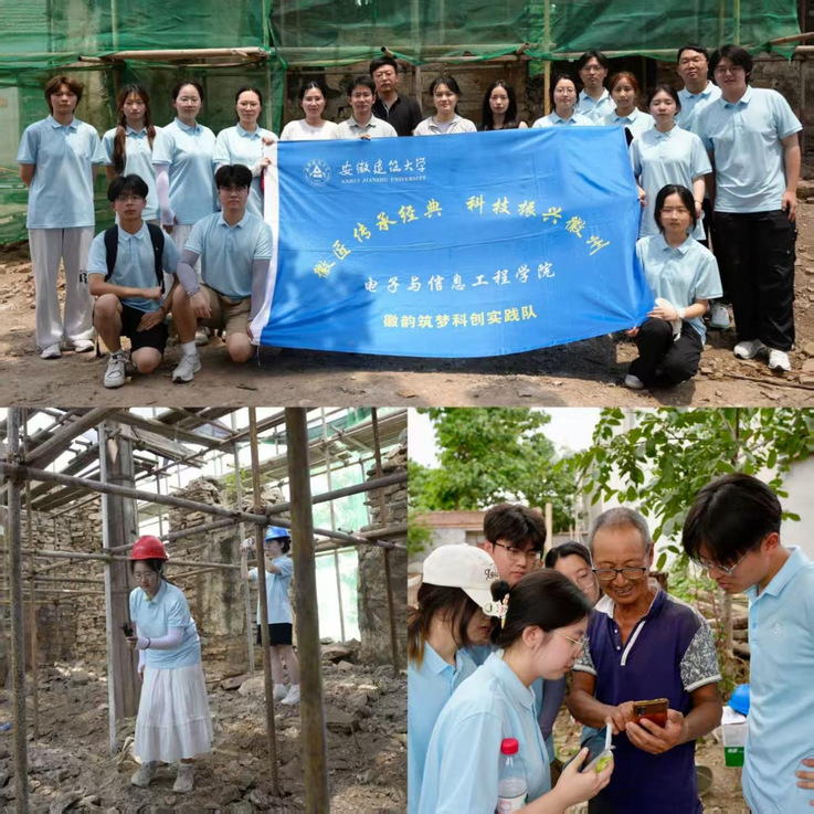 实践团走进淮北草庙村淮海战役纪念堂,通过参观历史文物和聆听讲解,深入学习“听党指挥、依靠人民、团结协同、决战决胜”的淮海战役精神。团队成员通过影像记录和走访调查,收集红色文化素材,并在纪念堂前重温入党誓词,坚定理想信念。随后,实践团实地考察了正亟待修复的当地历史文化遗产——玉帝庙,在调研工程中,团队使用无人机和三维建模技术记录监测建筑损害部位,针对这栋清代留存下来的珍贵文化遗产的保护现状,团队提出了三条切实可行的修复建议,并向经验丰富的老匠人虚心求教传统修缮技艺,老匠人表示:“保护历史建筑不仅是技术传承,更是守护民族根脉的责任。”此次实践充分融合传统工艺与现代科技,为历史建筑保护提供新思路。