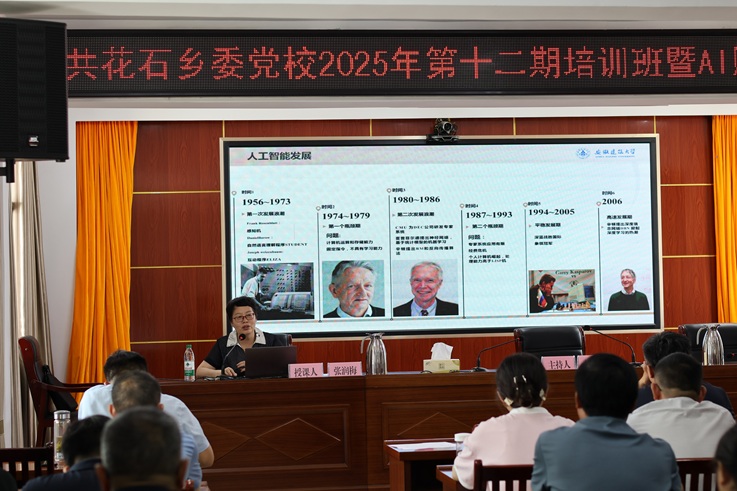 张润梅带领AI赋能乡村振兴实践团,为花石乡全体乡村干部开展“AI赋能政务工作”专题党课活动,助力乡村政务高效开展、注入新动能。花石乡党委组织了五十余名基层干部参与了此次党课的学习。